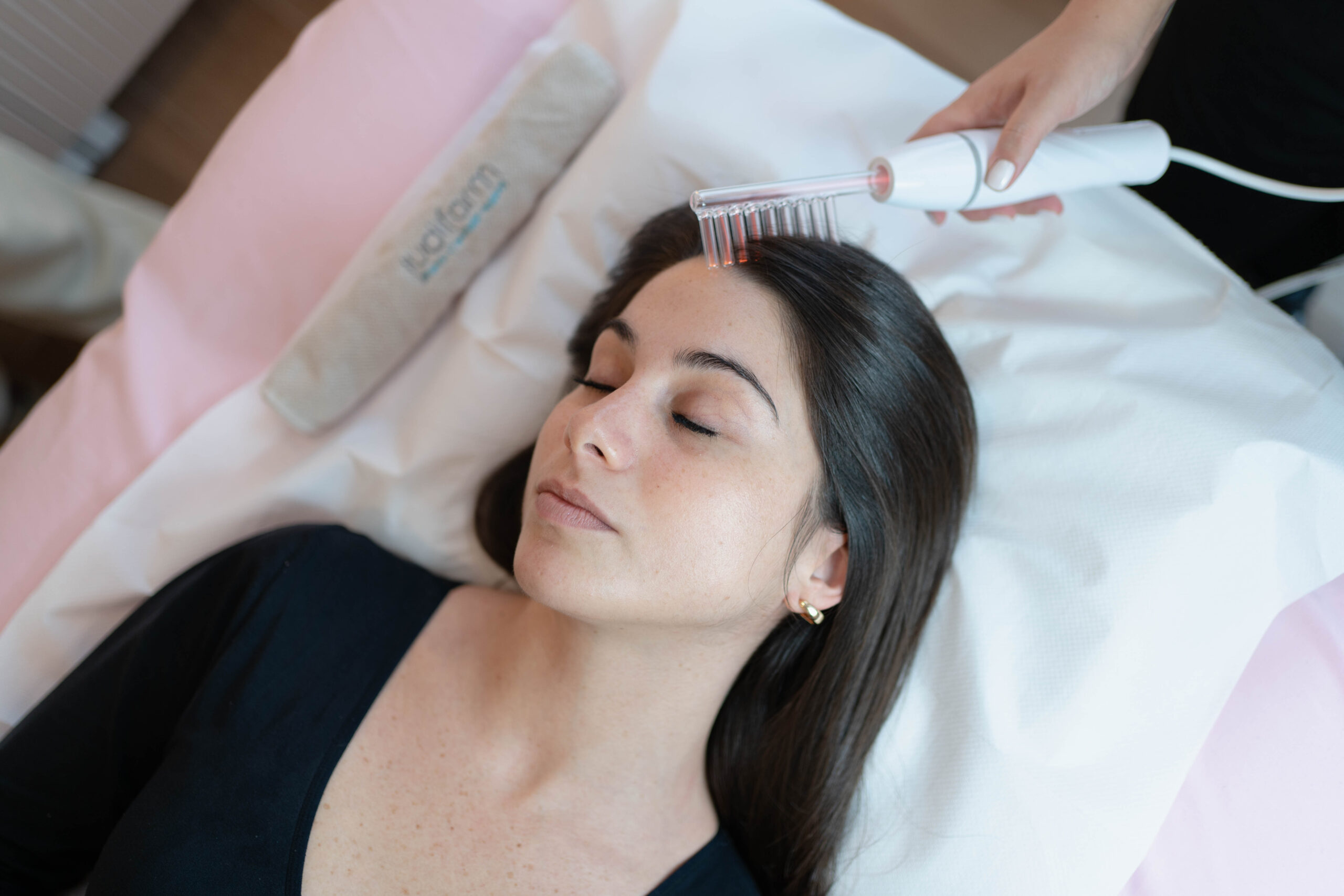 Ossigenoterapia per illuminare il viso e radiofrequenza per migliorare l’elasticità.